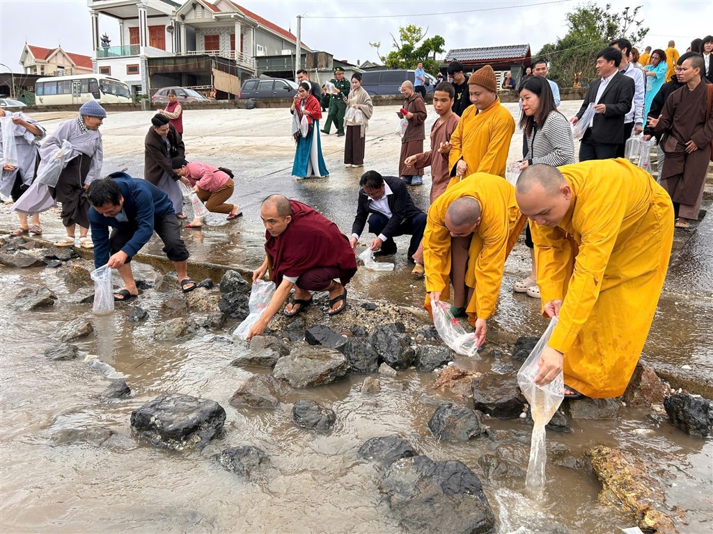 Trong chuỗi hoạt động của Lễ hội (diễn ra từ ngày 07- 09/11/2025), Chi cục Thủy sản và Kiểm ngư Nghệ An phối hợp với ban tổ chức lễ hội tổ chức thả phóng sinh tôm giống ra biển nhằm tuyên truyền cho các Tăng Ni và Phật tử thể hiện lòng từ bi, hiếu sinh và bày tỏ lòng thành kính với tổ tiên, mong cầu bình an. Về mặt môi trường, hành động này giúp tái tạo nguồn lợi thủy sản, bảo vệ cân bằng sinh thái, bảo tồn đa dạng sinh học và có thể tạo sinh kế cho người dân, tổng số lượng tôm giống thả đợt này gần 5 vạn.
