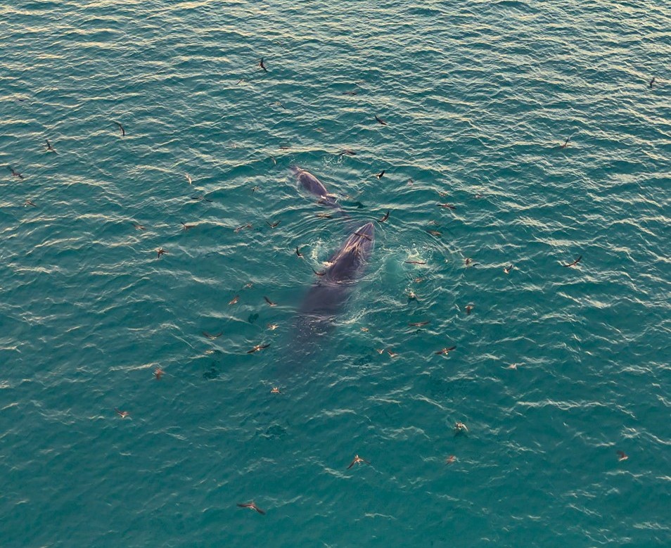 Hình ảnh cá voi mẹ và cá voi con xuất hiện trên vùng biển ven bờ tỉnh Gia Lai và Đắk Lắk hồi tháng 7/2025 (Ảnh: Sưu tầm)