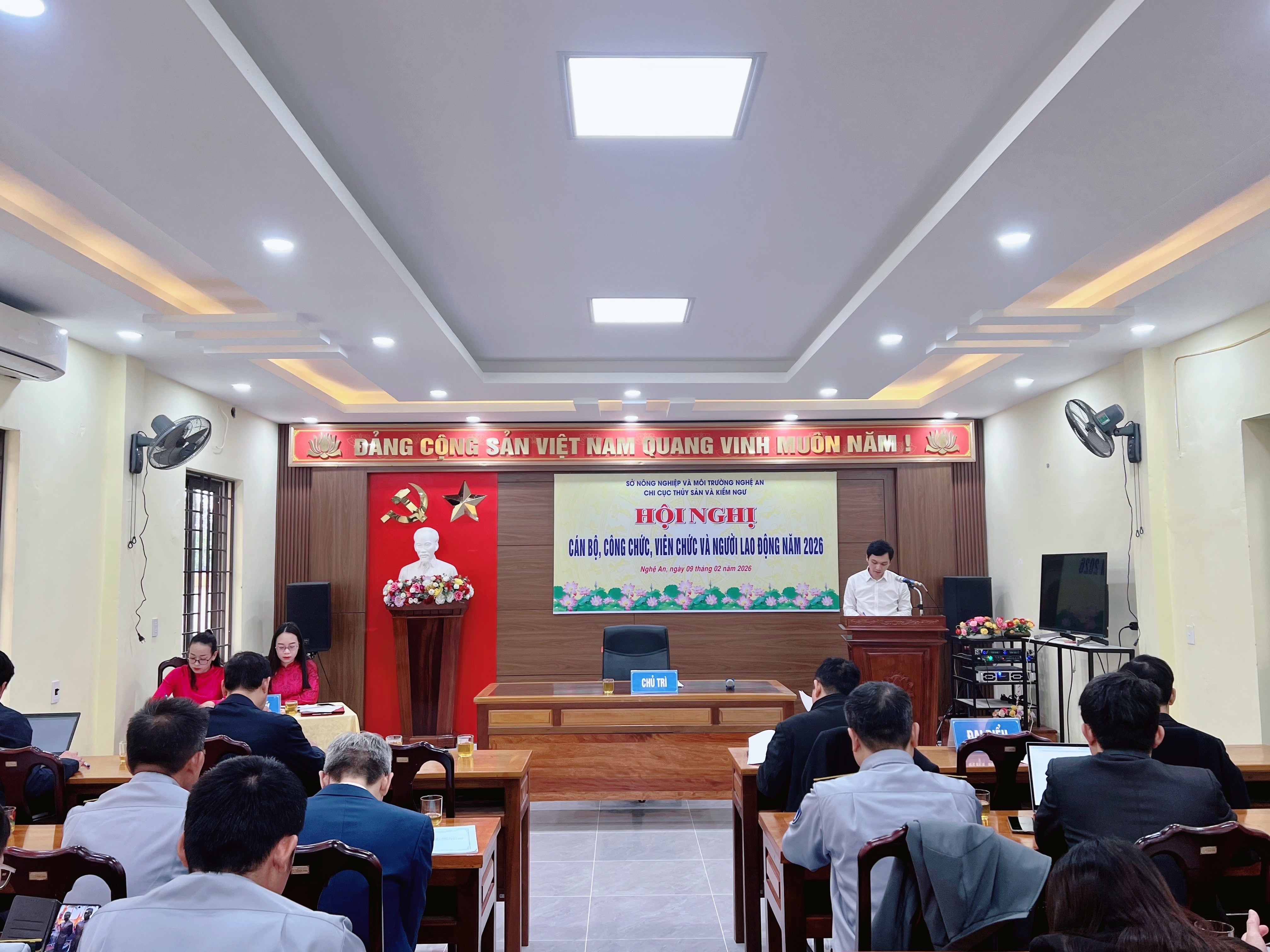 Ngày 09/02/2026 Chi cục Thuỷ sản và Kiểm ngư tỉnh Nghệ An đã tổ chức Hội nghị cán bộ công chức, viên chức và người lao động năm 2026, với tinh thần thẳng thắn, dân chủ, đoàn kết.
